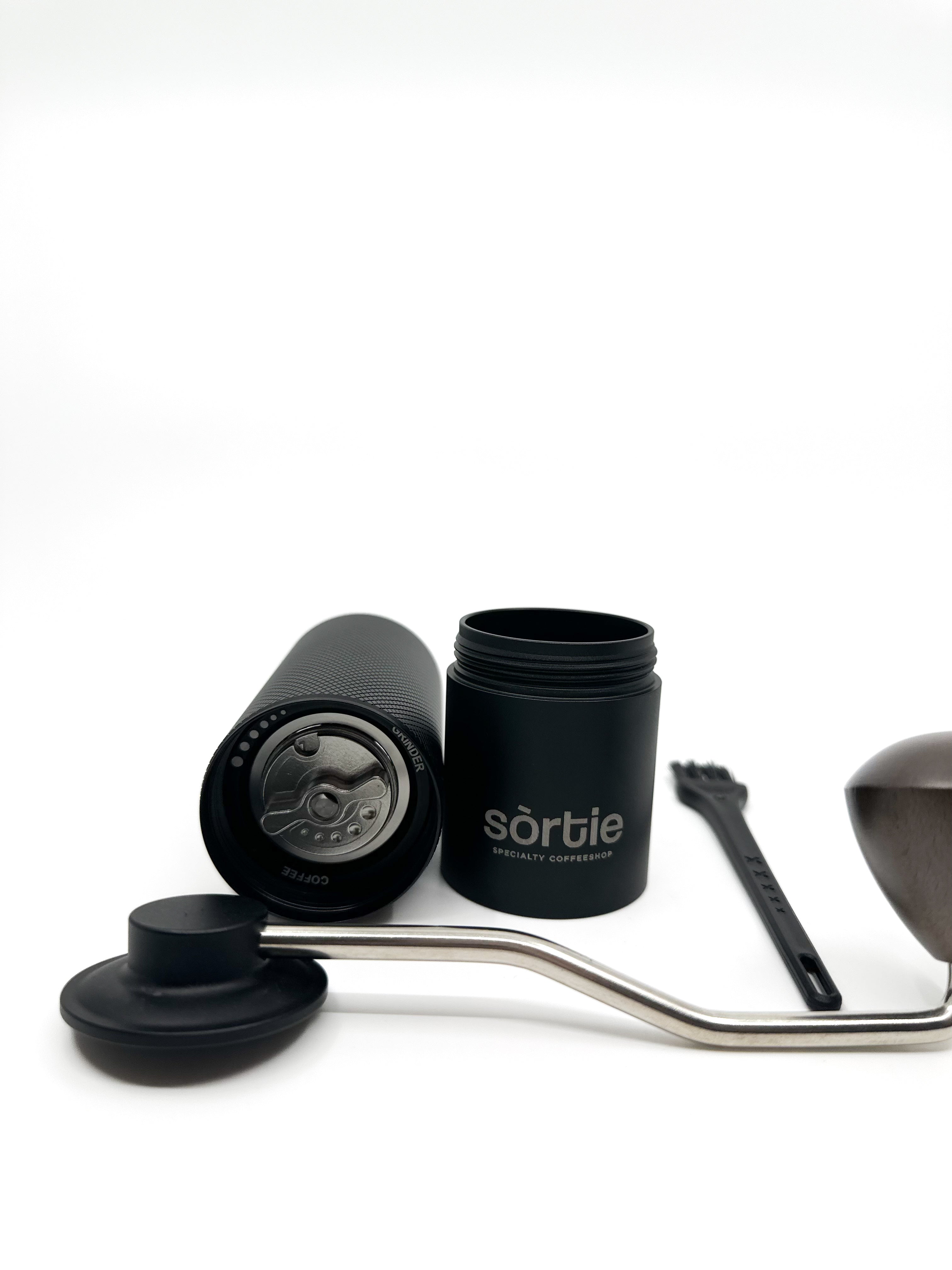 Grind fresh coffee anywhere with the Sortie Hand Grinder. It's small, strong, and easy to use.